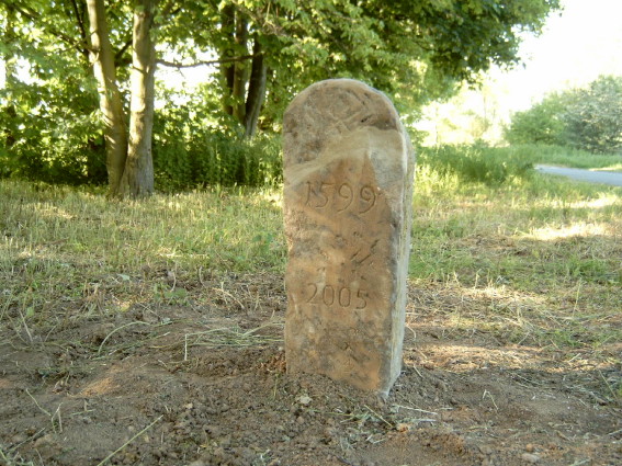 | Stift Bamberg und Land Sachsen bekämften sich ums Recht, in Kaltenbrunn und Gleußen die Zeit war damals schlecht. Gerichtsbarkeit und Zehnte, die gaben Grund zum Streit, das Volk hat viel gelitten durch die Parteilichkeit. Nach langem Strauß und Hader kam man doch überein, die Landgrenz zu regeln am Weg durch einen Stein. Er trug ein rotes Fähnlein, das weithin sichtbar war und, die ihn da passierten, die Deutung machte klar. Im Itzgrund wird der Grenzstein auch Heroldstein genannt, weil bis hierher der Herold des Landes ward benannt. Noch heute steht das Zeichen am Matzenbach im Gras, dort dient er nun zur Markung des Fluren an der Straß`. |
